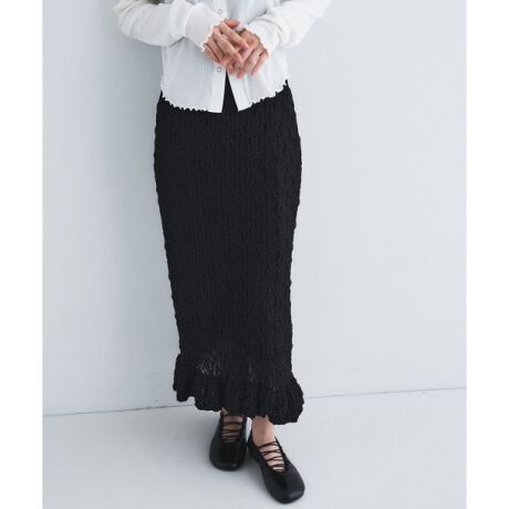 #レーススカート #タイトシルエット #ストレッチ素材 #フリルデザイン #レイヤード