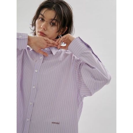 肌当たりの良いベーシックなシャツは、今期のテーマでもある北欧を意識したカラーリングがポイント。程よくオーバーなサイズ感で羽織としても、レイヤード要員としても活用頂きやすいです。アクセントとして左前にはブランドロゴを配色で刺繍しています。