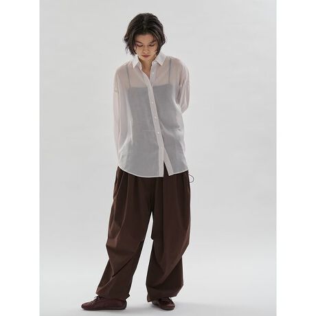 フロントタックと、サイドの立体的なデザインが印象的なボリュームパンツ。程よく丸みのあるシルエットが、スタイリングにモードなニュアンスを添えます。