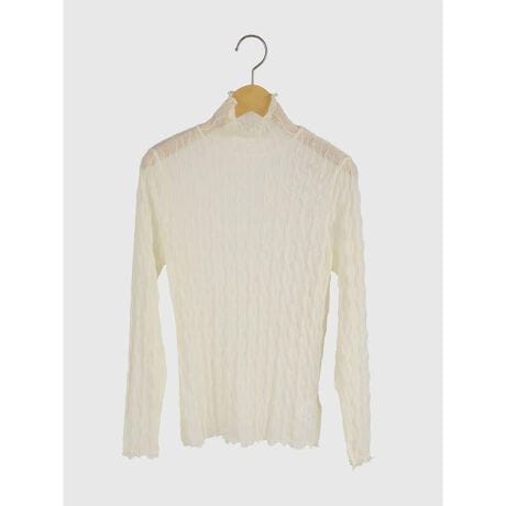 ウェーブを描いた凹凸感のあるデザインが魅力のハイネックシアートップス。