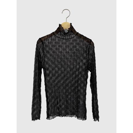 ウェーブを描いた凹凸感のあるデザインが魅力のハイネックシアートップス。