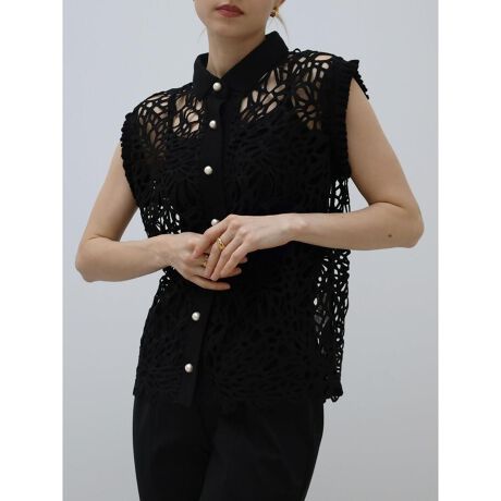 ケミカルレースノースリーブブラウス