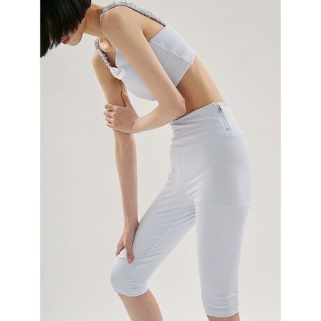 スタイルアップを叶える膝下丈のハーフレギンス。ウエストには機能的なジップポケットとスマートフォン対応の大きめポケットを2つ配置し、洗練されたアクティブスタイルをサポートします。