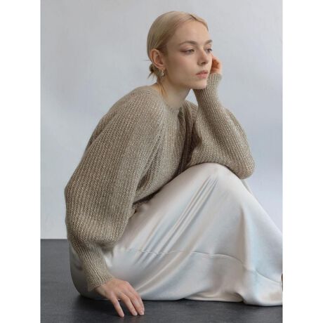 煌びやかにラメ糸が放つ華やかさが目を惹くニットトップス。女性らしさのあるバルーンスリーブを取り入れ立体感のあるシルエットに心惹かれる逸品。ゆとりある身幅にバランスの取れた丈間がリラクシーながらにコーディネートの格を上げてくれる一品。インナーとのレイヤードスタイルででロングシーズン活躍する一着です。