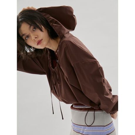 心地よい高機能な素材を使用したアノラックタイプのブラウス。くしゅくしゅとギャザーが入った胸元と裾と大きなフードがポイントの1枚。フードも大きめにしており、シンプルながらデティールにこだわりを。袖にはベルクロの代わりにアウトドアでブランドで使用されるブロックテーピーを使用。水際でも着ていただけるように水はけのよいものに。機能的にもラッシュガードとして着用いただくことも可能。