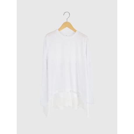 裾にレースをドッキングした、レイヤードに活躍するプルオーバー。