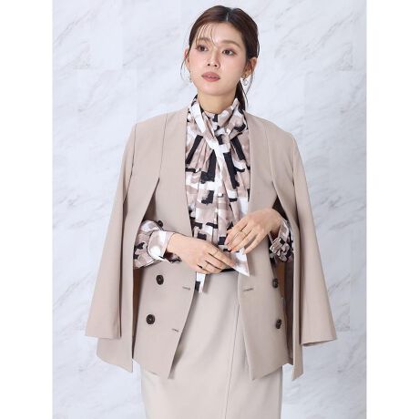 ダブルフロントデザインを効かせた、上品でモダンな印象のノーカラージャケット。