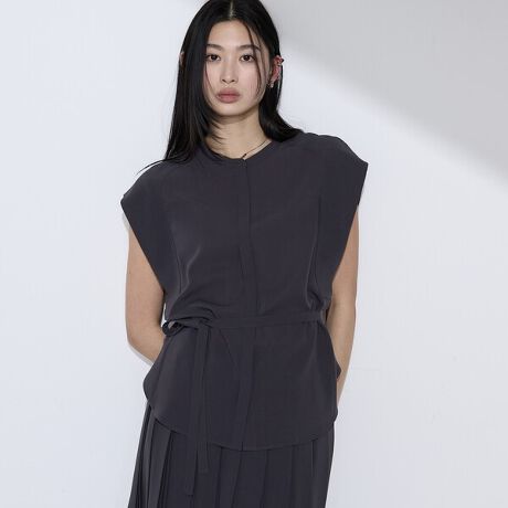 共地ベルトが付いているので結んでフェミニンに、ベルトなしですっきりと着ても良いシルエットを変化できる仕様です。