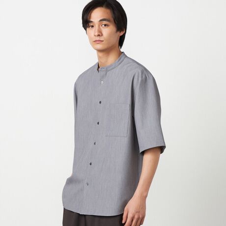 上品な素材感の5分袖バンドカラーシャツです。