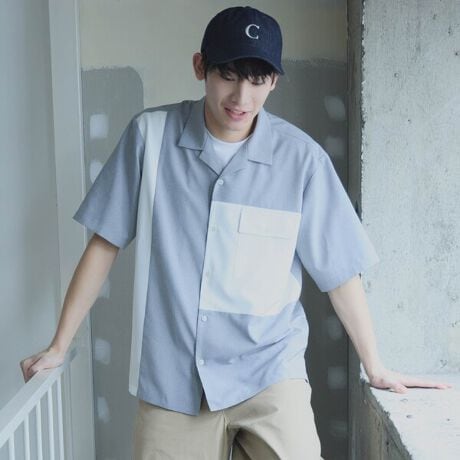 マルイウェブチャネル   /   コムサイズム   /   トップス   /   シャツ   /   ライトウエイトポリエステル ブロッキング オープンカラーシャツ