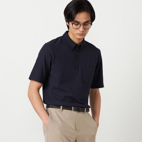 【吸水速乾】市松ジャカード ポロシャツ