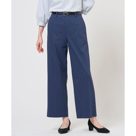 ■デザイン程よいゆとりを持たせた、大人の抜け感を演出するセミワイドパンツ。後ウエストベルトはゴム仕様で、締め付け感の少ない快適な穿き心地です。素材のストレッチ性により、動きやすさも魅力。フロントのウエストベルトには、タブと釦ディテールを施し、トップスインでもスタイリッシュに決まります。楽な穿き心地ときちんと感を兼ね備え、オンオフ問わず活躍するアイテムです。カラーは、洗練された柔らかさのあるライトグレー(#003)、落ち着きのある端正な印象のスレート(#004)、穏やかで安心感のあるベージュ(#033)、爽やかで知的な印象のブルー(#070)、シーンレスに活躍するネイビー(#075)の5色展開です。ライトグレー(#003)のみ裏地ありです。