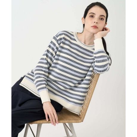 3色のカラーを繊細に組み合せたシングルジャガードのボーダー柄ニットプルオーバー。