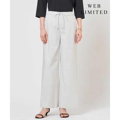 ■デザインゆったりとしたシルエットの大人のリラックスムード漂うワイドストレートパンツ。ウエストのドローコードは、外側で結んでカジュアルに穿くのはもちろん、内側に隠して結ぶこともできるため、すっきりとしたきれいめスタイルでもお使いいただけます。締め付け感が少なく快適な穿き心地も魅力。同素材のジャケットとセットアップで、通勤スタイルにもおすすめです。シーンやトップスを選ばない、大人のワードローブに持っておきたいアイテムです。カラーは、洗練された柔らかさのあるライトグレー(#003)、落ち着きのある端正な印象のスレート(#004)、スタイリングに華やかさをプラスするスカーレット(#011)、穏やかで安心感のあるベージュ(#033)、シーンレスに活躍するネイビー(#075)の5色展開です。ライトグレー(#003)のみ裏地ありです。