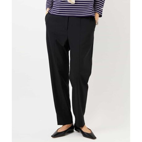 端正な印象のテーパードパンツ。フロントウエストはストレートですっきりと見せ、バックウエストはゴムギャザー仕様で快適なはき心地に仕上げています。センターに切り替えを入れることで、立体感のある美しいテーパードシルエットを実現しました。36サイズは限定店舗展開です。