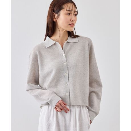 ・ポロカラーが程よくきちんと感を添えるカーディガン。