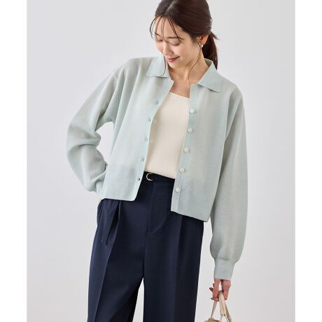 ・ポロカラーが程よくきちんと感を添えるカーディガン。