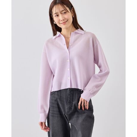 ・ポロカラーが程よくきちんと感を添えるカーディガン。