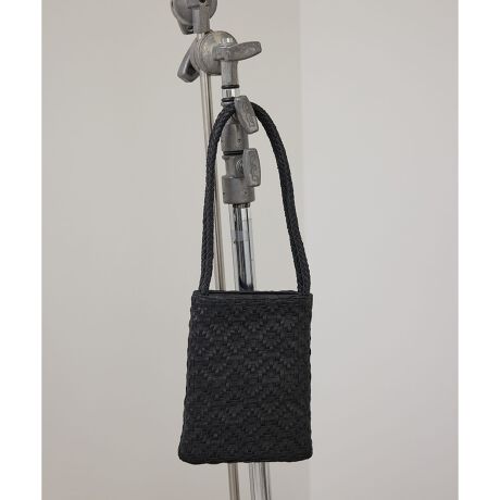 さりげないダイヤ柄の編み地が上品なアクセントになるレザーメッシュミニトート。