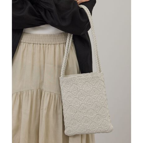 さりげないダイヤ柄の編み地が上品なアクセントになるレザーメッシュミニトート。
