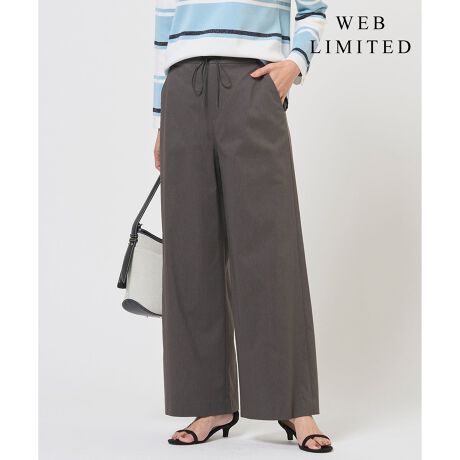 ■デザインゆったりとしたシルエットの大人のリラックスムード漂うワイドストレートパンツ。ウエストのドローコードは、外側で結んでカジュアルに穿くのはもちろん、内側に隠して結ぶこともできるため、すっきりとしたきれいめスタイルでもお使いいただけます。締め付け感が少なく快適な穿き心地も魅力。同素材のジャケットとセットアップで、通勤スタイルにもおすすめです。シーンやトップスを選ばない、大人のワードローブに持っておきたいアイテムです。カラーは、洗練された柔らかさのあるライトグレー(#003)、落ち着きのある端正な印象のスレート(#004)、スタイリングに華やかさをプラスするスカーレット(#011)、穏やかで安心感のあるベージュ(#033)、シーンレスに活躍するネイビー(#075)の5色展開です。ライトグレー(#003)のみ裏地ありです。