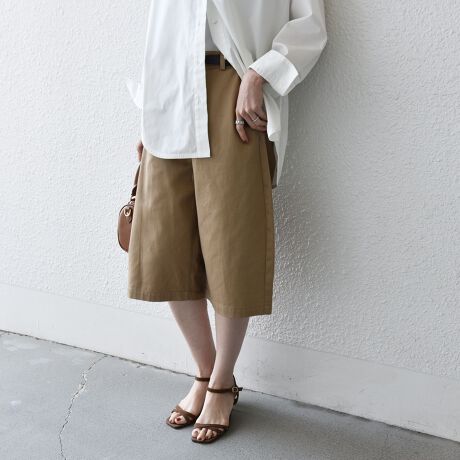 膝下丈なので露出が少なく、普段ハーフパンツを穿かない方にも挑戦しやすい一着です。