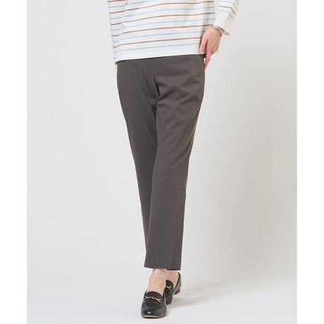 ■デザイン太もも周りに程よいゆとりを持たせたテーパードパンツ。身体のラインを拾いすぎず、脚をすっきりと見せてくれる、スタイリッシュなシルエットが魅力です。ブラウスやジャケットと合わせれば、オフィスやきれいめなシーンに、ニットやスウェットと合わせれば、抜け感のあるカジュアルスタイルにも活躍します。ウエストのバックル&タブデザインが、トップスインのさりげないアクセントに。同素材のジャケットと合わせれば通勤にも対応する、着回し力抜群のアイテムです。カラーは、洗練された柔らかさのあるライトグレー(#003)、落ち着きのある端正な印象のスレート(#004)、スタイリングに華やかさをプラスするスカーレット(#011)、穏やかで安心感のあるベージュ(#033)、爽やかで知的な印象のブルー(#070)、シーンレスに活躍するネイビー(#075)の6色展開です。ライトグレー(#003)のみ裏地ありです。