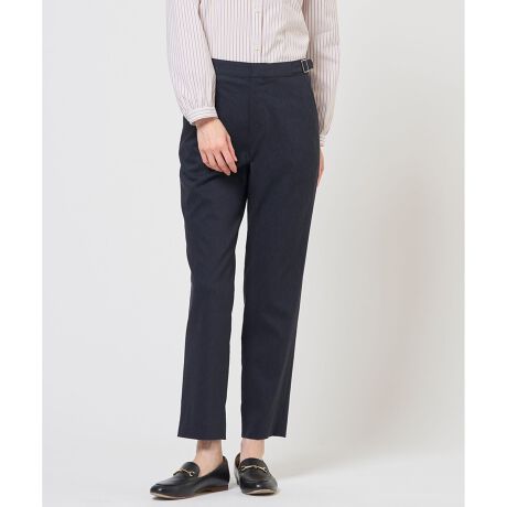■デザイン太もも周りに程よいゆとりを持たせたテーパードパンツ。身体のラインを拾いすぎず、脚をすっきりと見せてくれる、スタイリッシュなシルエットが魅力です。ブラウスやジャケットと合わせれば、オフィスやきれいめなシーンに、ニットやスウェットと合わせれば、抜け感のあるカジュアルスタイルにも活躍します。ウエストのバックル&タブデザインが、トップスインのさりげないアクセントに。同素材のジャケットと合わせれば通勤にも対応する、着回し力抜群のアイテムです。カラーは、洗練された柔らかさのあるライトグレー(#003)、落ち着きのある端正な印象のスレート(#004)、スタイリングに華やかさをプラスするスカーレット(#011)、穏やかで安心感のあるベージュ(#033)、爽やかで知的な印象のブルー(#070)、シーンレスに活躍するネイビー(#075)の6色展開です。ライトグレー(#003)のみ裏地ありです。