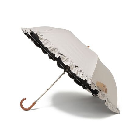 フリルデザインと木の持ち手が、大人っぽく上品な女性らしさを演出。