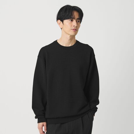 立体感のあるパール編みで仕上げた、クリーンな印象のクルーネックニット。