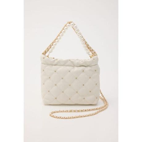 【キルティングにビジューがきらめくミニBAGの完成】■ポイントレザーとデニム生地のバリエーションで作成したレディーなキルティングバッグの登場。中綿を仕込みふっくらとしたキルティングにビジューを打ち込み高級感もプラス。普段使いも、オケージョンにも使えるのも嬉しいポイントです。■ディテールチェーンは取り外し可能で、ショルダー用とハンド用の2種類がついています。華やかなパールもついていて、コーディネートのポイントにも、アクセ感覚で持てるバッグを目指しました。コンパクトな見た目ながら収納力にも拘りスマートフォン、ミニウォレットが収納できるようサイジングしました。■スタイリングシンプルコーデを一気に華やかに見せてくれるアクセ感覚で使えるバッグです。■生地透け感:なし裏 地:あり伸縮性:なし光沢感:なし厚 さ:中肉■商品のお気に入り登録お気に入りアイテムの再入荷・在庫1点などの通知を受け取ることができます。[注意事項]※画像の商品はサンプルです。実際の商品と仕様、加工が若干異なる場合があります。※画像の商品は光の照射や角度、お使いのモニター環境により、実物と色味が異なる場合がございます。※着用、お取り扱いの際は、アテンションタグをご確認ください。