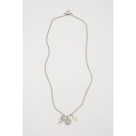 【MANY CHARM NECKLACE/ メニ□ チャーム ネックレス】■ポイント&ディテールマウジーのデニムで使用されているネオバ釦型のチャームとその他2つのチャームがさりげなく揺れる、ヴィンテージライクなチェーンネックレス。ほどよい存在感と抜け感を演出してくれるデザインで、シンプルなスタイリングにアクセントを加えてくれます。チェーンはあえて少し長めに仕上げているので、Vネックやネックラインが広めのトップスとの相性も抜群。いつものコーデにプラスするだけで、こなれ感のある大人のムードに。■スタイリングチャームの組み合わせや細かな加工もヴィンテージ感たっぷりで、カジュアルにもフェミニンにも溶け込む万能アイテム。デイリー使いはもちろん、レイヤードスタイルのアクセントとしてもおすすめです。■商品のお気に入り登録お気に入りアイテムの再入荷・在庫1点などの通知を受け取ることができます。■ブランドのお気に入り登録新作アイテムの入荷や人気アイテムの再入荷、おすすめトピックスなど、いち早くブランドの情報を受け取ることができます。[注意事項]※画像の商品はサンプルです。実際の商品と仕様、加工が若干異なる場合があります。※画像の商品は光の照射や角度、お使いのモニター環境により、実物と色味が異なる場合がございます。※着用、お取り扱いの際は、アテンションタグをご確認ください。