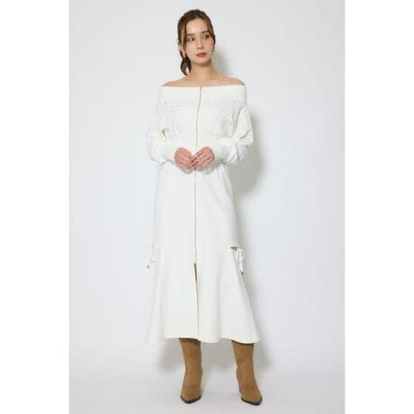 【riendaらしく落とし込んだ、スウェットマーメイドワンピース】■ポイント胸元に大胆にちりばめたビジューが華やかなスウェット素材のマーメイドワンピースがriendaよりお目見え。オフショルデザインにすることでよりヘルシーで女っぽい印象に仕上げました。ウエスト後ろ部分にはゴムが入っているのでストレスフリーな着心地です。■ディテールオフショル部分にはカットリブを採用。締め付け感が少なく、しっかりフィットしてくれます。マーメイドのサイドにはさりげない肌見せとリボンディティールを施し、膝位置を高く見せてくれる効果も◎■スタイリング袖巾が大きすぎなく、アウターを上からも着られるようサイジングしました。ロングブーツ合わせや、春先にはスニーカー合わせもおすすめです。■生地透け感:なし裏 地:なし伸縮性:若干あり光沢感:なし厚 さ:中肉■商品のお気に入り登録お気に入りアイテムの再入荷・在庫1点などの通知を受け取ることができます。[注意事項]※画像の商品はサンプルです。実際の商品と仕様、加工が若干異なる場合があります。※画像の商品は光の照射や角度、お使いのモニター環境により、実物と色味が異なる場合がございます。※着用、お取り扱いの際は、アテンションタグをご確認ください。
