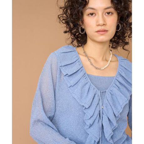 ラメニットフリルカーディガン