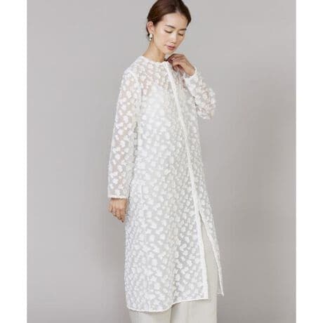 ■デザインシアー感のある表情豊かなカットジャカード素材を使用したワンピース。抜け感のあるボクシーシルエットで、ストレスフリーな着心地を実現した一着。シンプルなボディにふんわりとしたスリーブがアクセントとなり、さらにトレンドのクロップト丈とクラシカルなくるみ釦が程よい上品さを添えます。トップスとしてはもちろん、軽く羽織るアイテムとしても活躍する万能なデザインです。■素材トレンド感のあるシアーな表面と、カットジャカードによる表情豊かな凹凸感、そして甘すぎない抽象的なフラワーモチーフが魅力の素材。適度なハリが立体的なシルエットを生み出し、スタイリングのアクセントになる存在感を放ちます。さらに、すっきりとした清涼感に加え、シワになりにくい扱いやすさも備えており、デイリーに取り入れやすい素材。・水洗い可同素材のブラウス品番:6961182008■サンプル撮影商品画像の商品はサンプルです。実際の商品とはサイズや色味、素材、デザイン等の仕様が若干変更になる場合がございます。■カラーについては、可能な限り実際の商品に近いカラーにて撮影をおこなっておりますが、照明の関係により実際の製品とは色味が違って見える場合があります。またパソコン・スマートフォンなどの環境により、若干製品と画像のカラーが異なる場合もございます。現物と画像のカラー差異については返品理由となりませんので、予めご了承ください。■サイズ表記はあくまで目安となります。