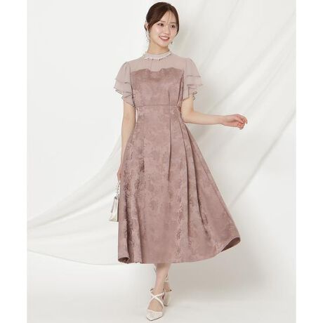 立体感のある素材が映える、ジャガードタックフレアワンピース【Design】・タックを施したフレアシルエットで、女性らしいラインを演出できるワンピース。・デコルテと袖にはシフォン素材を使用し、軽やかで抜け感のある印象に。・袖は2段フリル仕様で、動くたびに華やかな表情をプラス♪・バックスタイルはレースアップデザインで、後ろ姿までフェミニンに仕上げました。・1枚で着映えするのはもちろん、羽織りを合わせたスタイリングもおすすめです!【Fabric】・表情のあるジャガード素材を使用し、上品で立体感のある風合いに。・シフォン部分は軽やかな透け感があり、やさしい印象を演出します。・ラベンダー、モカ、チャコールグレーの3色展開になります。【Care】・ドライクリーニング