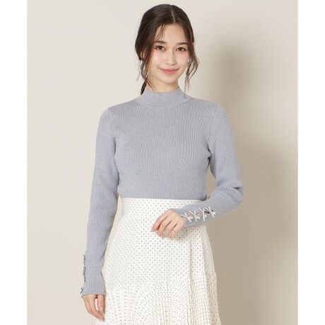 ほのかな輝きがアクセントになる、袖リボンラメリブニット【Design】・さりげなくきらめくラメ入りのリブニットで、上品な印象に。・袖には小さなリボンをあしらい、フェミニンなアクセントをプラス。・すっきりとしたシルエットで、きれいめにもカジュアルにも合わせやすいデザインです♪・1枚ではもちろん、ワンピースのインナーとしても活躍!・デイリーからお出かけまで、幅広いシーンで着用いただけます♪【Fabric】・やわらかな風合いのニット素材を使用。・ご自宅でお手入れが出来るのも嬉しいポイント♪・ホワイト、ピンク、ブルー、ブラックの4色展開となります。【Care】手洗い可能