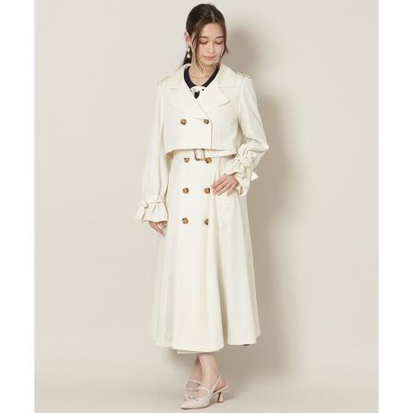 1着で印象を変えられる、3Wayトレンチコート【Design】・好評だった3Wayトレンチコートを、リボンスリーブデザインでアップデート。・そのまま着用すれば、クラシカルで上品なトレンチスタイルに。・インナー部分のみでの着用は、ワンピースとしても楽しめ、トップス部分のみでの着用は、ショートジャケットとして活躍します。・ベルトでウエストを引き締めることで、メリハリのあるシルエットになります◎・べっ甲調ボタンが、さりげなく上品なアクセントをプラス。・シーンや気分に合わせてアレンジできる、マルチに使える1着です♪【Fabric】・なめらかな風合いの素材を使用。・ホワイト、エクリュ、ベージュ、の3色展開となります。【Care】ドライクリーニング
