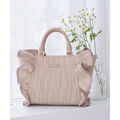 ◇SAMANTHAVEGA(サマンサベガ)のラメフリルハンドバッグ大人気フリルシリーズから、キラキラのラメが輝く新作が登場。存在感のあるたっぷりのフリルがポイントです。▽デザイン・サイドの立体感のある大振りなフリルがポイントです。・生地に細かなラメが施されており、スタイリングが華やかになります。・カジュアルな中にも柔らかいフェミニンさをプラスしたデザインで、幅広いスタイリングに合わせていただきます。▽機能性・斜め掛け可能なショルダー付きで2WAY仕様。スタイリングに合わせて仕様変更できます。・内装にはファスナー付きポケットがあるので、細かなものも収納しやすいです。・天ファスナー付きでセキュリティーも安心です◎【対応しているもの】・長財布・ペットボトル500ml