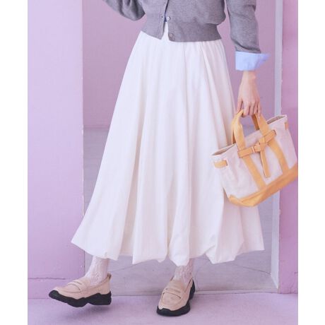 立体感で魅せる、軽やかな大人のニュアンスふんわりと丸みを帯びたシルエットが、装いに自然な存在感を与える一枚です。裾に向かって生まれる立体的なボリュームが、歩くたびにやさしく揺れ、女性らしい柔らかさを引き立てます。ウエストはゴム仕様のため、締め付け感が少なく、長時間の着用でも快適に過ごせます。トップスをインしてもアウトしてもバランスが取りやすく、シンプルなカットソーやニットと合わせるだけで洗練された印象に仕上がります。ほどよくモードな雰囲気がありながら、日常に取り入れやすいデザインなので、カジュアルな外出や休日のお出かけにも活躍します。体のラインを拾いにくく、自然に体型をカバーできる点も嬉しいポイントです。季節を問わず着回しやすく、ワードローブに加えることでコーディネートの幅が広がります。透け感[なし]