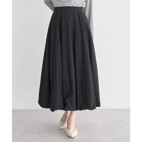 立体感で魅せる、軽やかな大人のニュアンスふんわりと丸みを帯びたシルエットが、装いに自然な存在感を与える一枚です。裾に向かって生まれる立体的なボリュームが、歩くたびにやさしく揺れ、女性らしい柔らかさを引き立てます。ウエストはゴム仕様のため、締め付け感が少なく、長時間の着用でも快適に過ごせます。トップスをインしてもアウトしてもバランスが取りやすく、シンプルなカットソーやニットと合わせるだけで洗練された印象に仕上がります。ほどよくモードな雰囲気がありながら、日常に取り入れやすいデザインなので、カジュアルな外出や休日のお出かけにも活躍します。体のラインを拾いにくく、自然に体型をカバーできる点も嬉しいポイントです。季節を問わず着回しやすく、ワードローブに加えることでコーディネートの幅が広がります。透け感[なし]