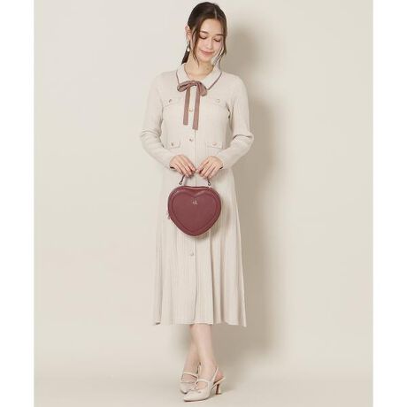 上品なディテールが映える、フロントボタンリボンタイニットワンピース【Design】・ゴールドボタンとバイカラーデザインが、コーディネートにさりげない華やかさを添えるワンピース。・リボンタイデザインで首元にフェミニンなアクセントをプラス。・すっきりとしたシルエットで、女性らしいラインを引き立てます。・1枚で着映えするのはもちろん、羽織りを合わせたスタイリングもおすすめ◎・被り仕様です。【Fabric】・やわらかな風合いのニット素材を使用。・ご自宅でお手入れが出来るのも嬉しいポイント♪・ホワイト、ピンク、ブルー、ネイビーの4色展開となります。【Care】手洗い可能