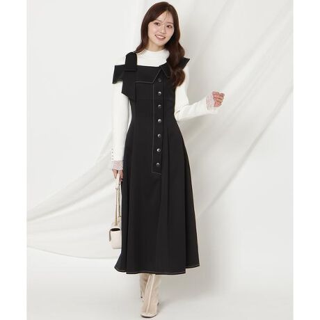 アシメデザイン×肩リボンが視線を惹く、大人フェミニンなジャンスカワンピース【Design】・ワンショル風のアシンメトリーなショルダーラインが、上品な抜け感を演出します。・リボンをあしらったワンショル風デザインで、甘すぎずトレンド感のある仕上がりに。・バックスタイルはレースアップ仕様で、後ろ姿まで抜かりないデザイン◎・インナーにタートルやブラウスを合わせるだけで季節感のあるレイヤードスタイルが完成します♪・通勤からデート、お出かけシーンまで幅広く活躍する万能アイテムです。・左ファスナー仕様。【Fabric】・なめらかな風合いの素材を使用。・ベージュ、ピンク、インディゴ、ブラックの4色展開となります。【Care】ドライクリーニング