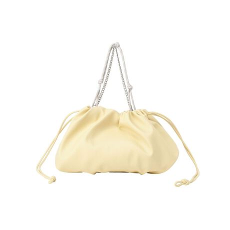 きゅっと結んで、可愛さも使いやすさも叶えるやわらかな表情が魅力の巾着デザインです。丸みのあるフォルムがコーディネートにほどよい甘さを添え、大人可愛い印象に仕上げてくれます。コンパクトなサイズ感ながら、スマートフォンやミニ財布、ポーチなどの必需品はしっかり収納でき、見た目以上の実用性がうれしいポイントです。チェーンとコードを組み合わせた持ち手は、アクセサリー感覚で楽しめ、シンプルな装いのアクセントにもなります。持ち方を変えられるため、その日の気分やスタイリングに合わせたアレンジが可能です。デイリーのお出かけからちょっとしたお呼ばれまで幅広く活躍し、使うたびに気分を高めてくれる存在です。上品さと可愛らしさを両立したバッグを探している方におすすめです。※モデル着用画像は、光の当たり具合で色味が違って見える場合がございます。※お使いのモニター環境によって商品の色味が違って見える場合がございます。