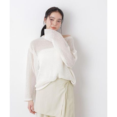 ・横にずらしてワンショルダーのように着こなすことで、女性らしい抜け感を演出