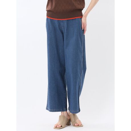 すとんとしたストレートシルエットが美脚ラインを演出してくれます。股上をやや深めにしてウエスト位置を高く見せることで脚長効果があります。裾部分は加工済みです。(股下67cm・ミシンたたき)