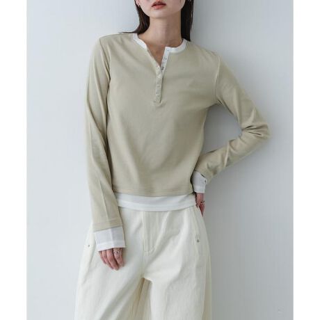 【一枚で完成するレイヤード。スッキリ見えを叶えるヘンリーネックカットソー】