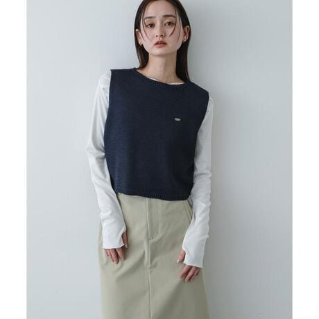 清涼感のある肌触りが心地よい、リネン風素材のニットトップス。程よくゆとりを持たせたシルエットと短めの丈感が、どんなボトムスともバランス良く決まり、クリアな佇まいを叶えてくれます。胸元の小さなプレートが、さりげないトレンド感を添えるポイント。一枚で着るのはもちろん、カットソーとのレイヤードで自分らしい夏のコーディネートを楽しむのもおすすめです。