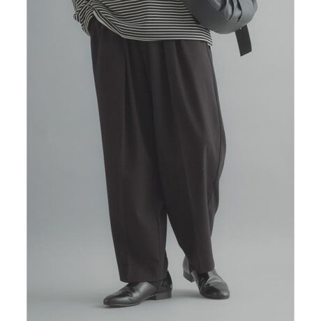 ・ワイドながらも裾に向かって緩やかに細くなるほどよいテーパードシルエットを採用。足元にもたつきのないスッキリとした仕上がりで、洗練された大人の印象を与えます。