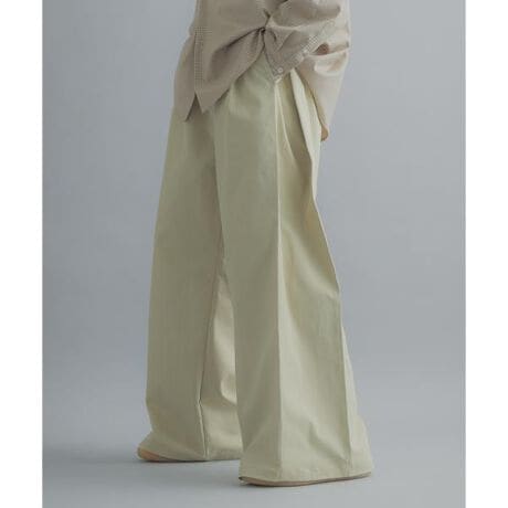 ・最大のポイントは、サイドにあしらったタックデザイン。フロントではなくサイドに変化をつけることで、従来のワイドパンツとは一線を画す、新鮮な動きと表情をプラスしました。